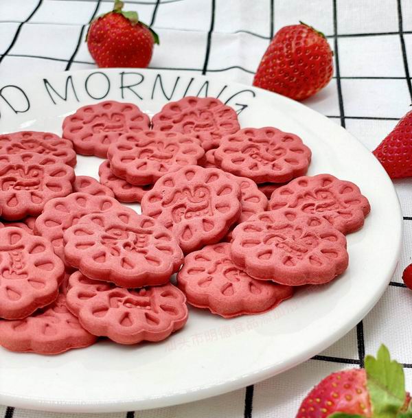 <明德香精+明德色素,草莓風(fēng)味餅干應(yīng)用效果實拍圖。盜圖必究>
