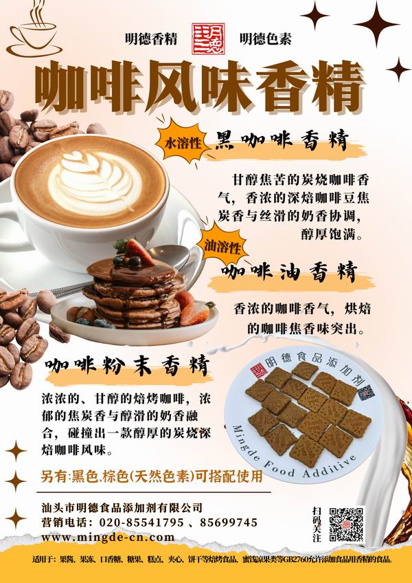 近年來,國內(nèi)咖啡消費(fèi)氛圍愈來愈濃,咖啡風(fēng)味多元融入了各個領(lǐng)域,如 果凍、餅干、雪糕等,甚至應(yīng)用于室內(nèi)香氛等。順應(yīng)市場潮流,提升味覺體驗(yàn)。汕頭市明德食品添加劑有限公司不斷創(chuàng)新、潛心專研,當(dāng)前我們擁有20余款咖啡相關(guān)風(fēng)味的香精,供您選擇。并持續(xù)不斷創(chuàng)新,努力研發(fā)更多符合市場需求的風(fēng)味。