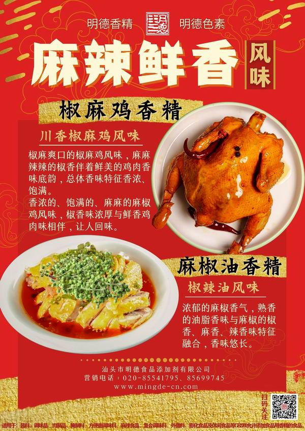 更有椒麻雞香精、麻椒油香精等椒辣味風(fēng)味香精,運(yùn)用于肉制品、調(diào)味料、外撒粉等產(chǎn)品中,為產(chǎn)品帶來麻辣鮮香的風(fēng)味體驗(yàn)。